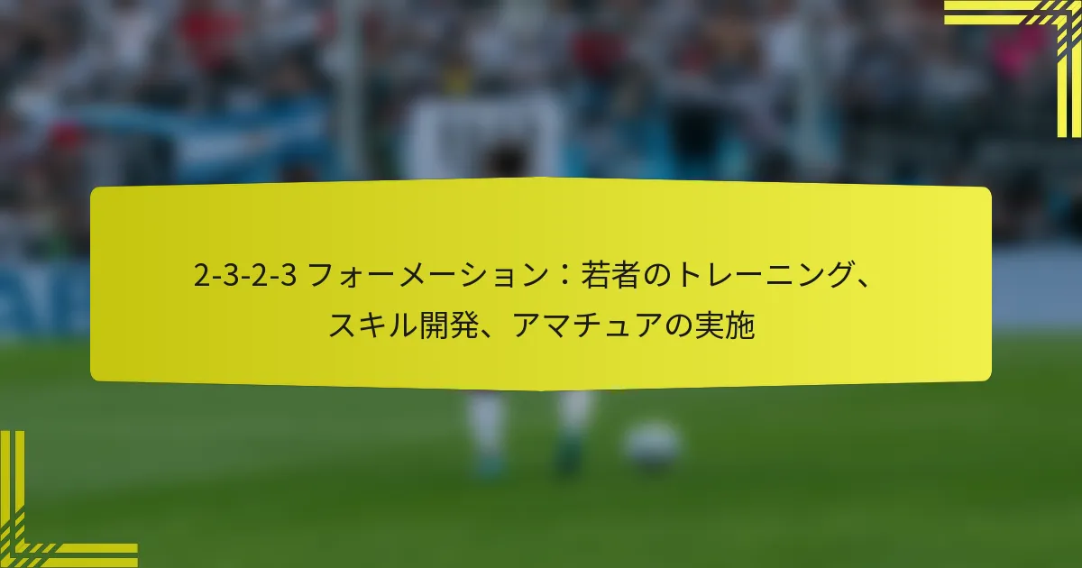 2-3-2-3フォーメーションは、若年層サッカーにおいて効果的な戦術的セットアップであり、防御の安定性と攻撃の選択肢のバランスを取っています。個人およびチームスキルを促進することで、このフォーメーションは選手が多様性と技術的能力を発展させることを奨励し、チームワークとコミュニケーションを育みます。アマチュアコーチは、明確な役割を強調し、戦術的概念を徐々に選手に導入することで、このフォーメーションを成功裏に実施できます。